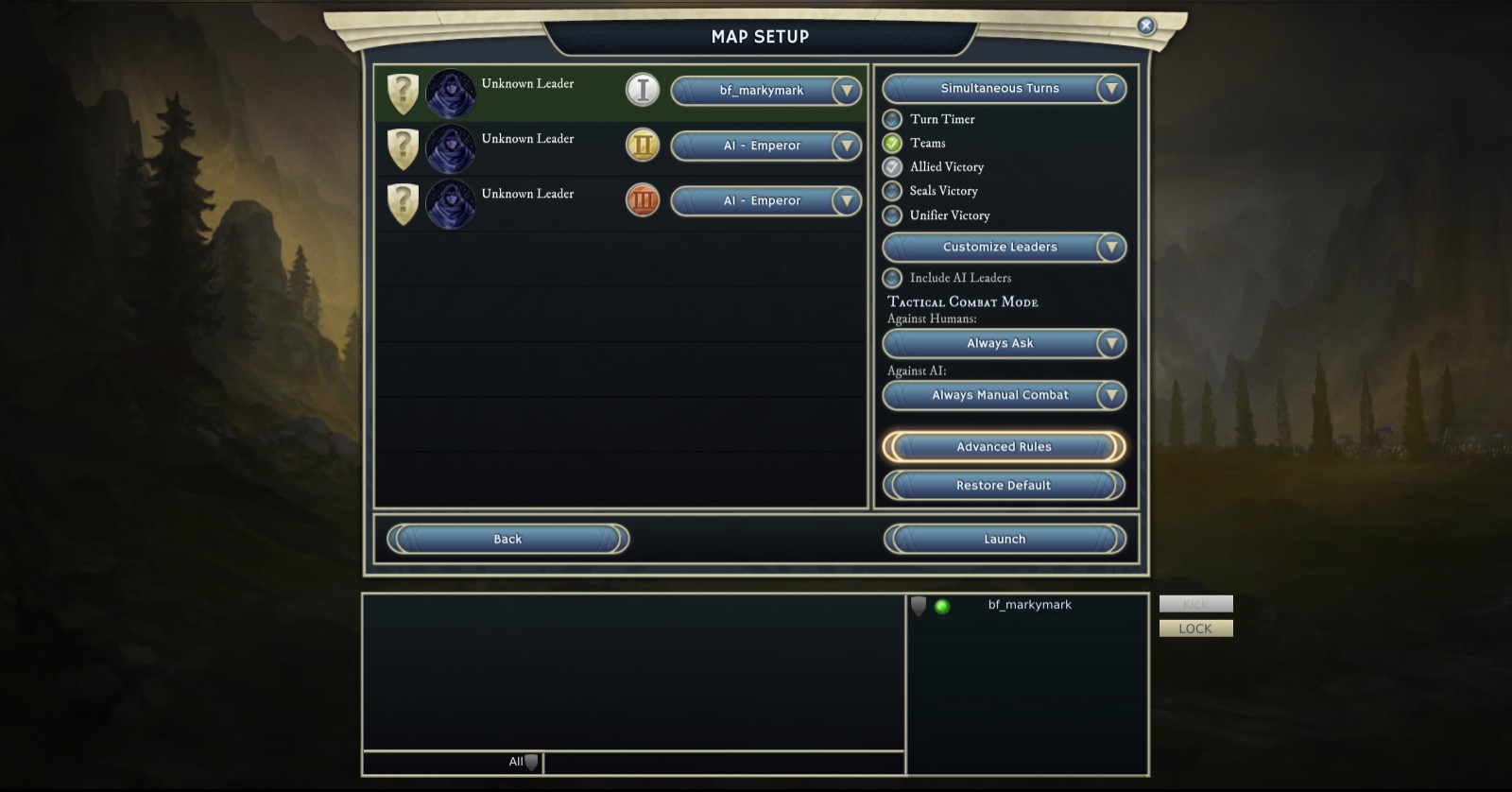 Want Play a duel or Team duel (2on2), but shall be a live Multiplayer game, not a PBEM.