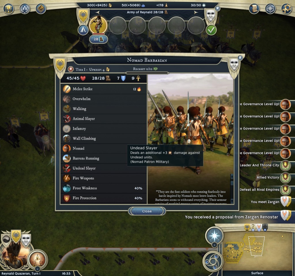 Marcus Pers already mentioned balance issues concerning the OP Genie unit and the support Chieftian being easy to level up. While I saw some early tier III-IV ability being available to the infantry quite early through racial governance. Meaning that Round Attack does translate that well from past series giving wing beat In a full circle. Might been accidentally a bit excessive for a tier I unit to get its hand on that early. While I will update with something more in line with balance.