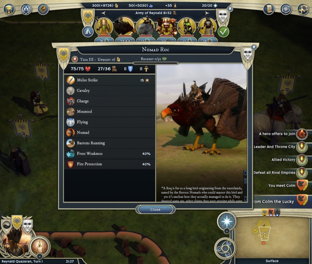 The Roq unit, the third mounted unit in the racial lineup. This one is not yet any "special" unit in comparison to the Halfling eagle rider or the Elven gryphon. Apart from racial governance where it gains the traditional "Magic Strike" ability from past games. This will make it a more support role by adding random elements to itself or other units.