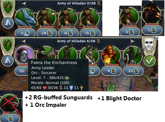 My Leader stack had my Leader level 10, Theo level 7, 2x Elite Warg Riders (though one died the last turn as I was scouting extensively to find a way to reach his Throne - and there was none, only through water or a long way around it - and he got kiled by roamers), Elite Hunter Spider Queen, Vampire Spider Queen, 2 Befriended Bears, 1 Veteran Butcher, 1 Toadstool Fairy, 1 Hunter Spider Baby, 1 Elite Befriended Baby Shock Serpent. So not crazy but enough to take Spirit's Throne (especially after the Evolve of the Serpent).