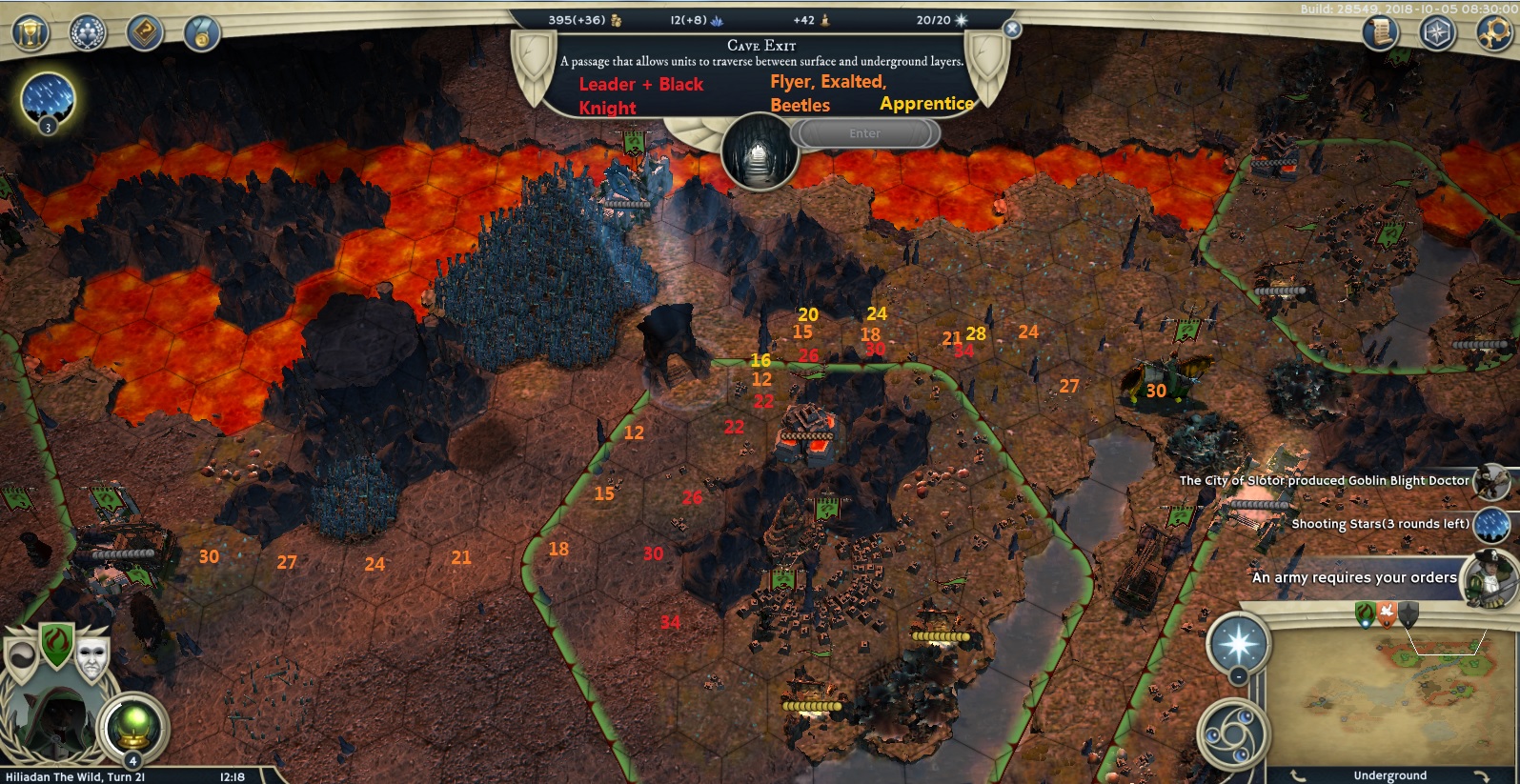Finally on turn 19, I found him! He was on the surface. But I was still unsure whether his Throne was UG or on the surface, even though I started to think it was on the surface because nothing was cleared UG.