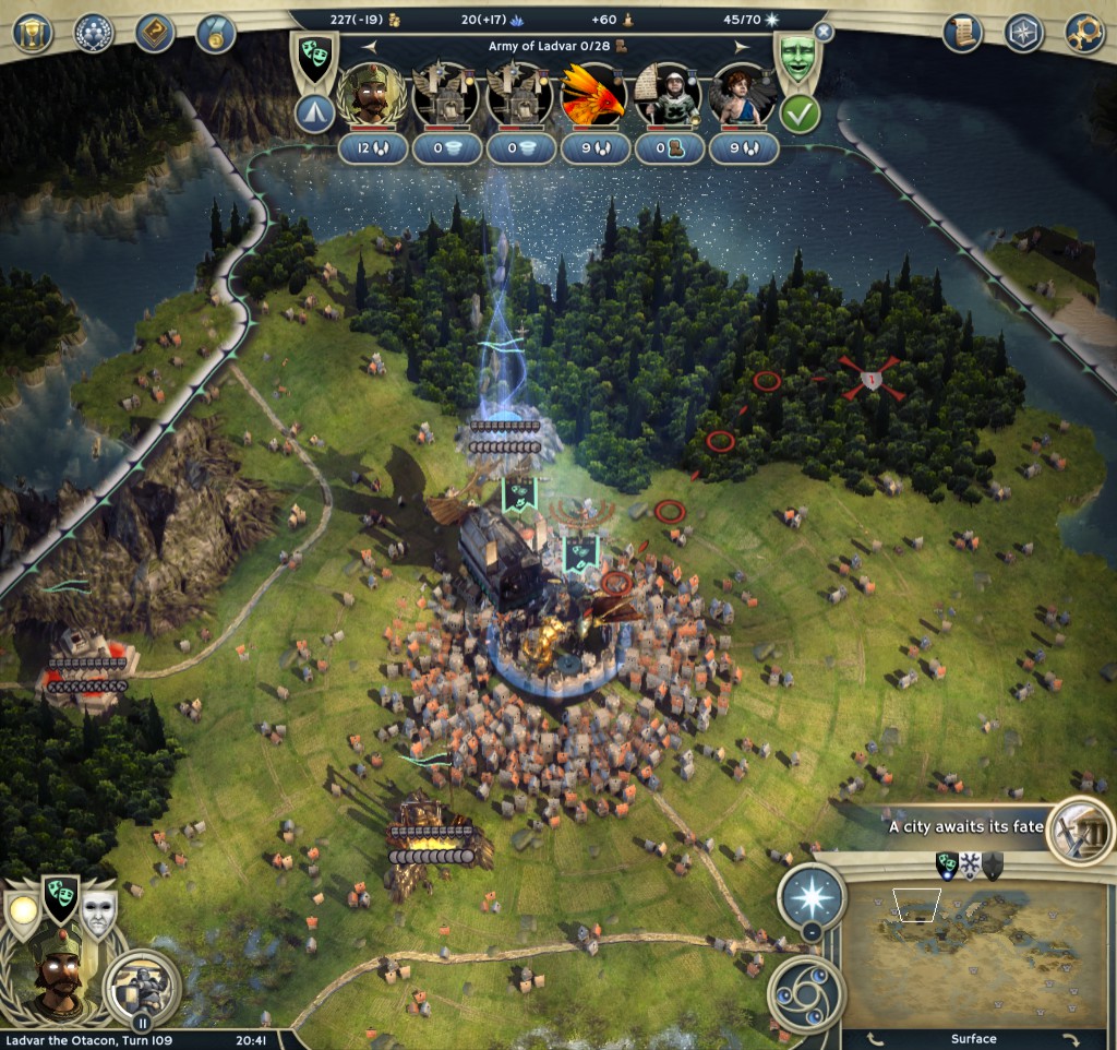 At the end, I think we both destroyed our empires, I had a city left and 3 of his, but I had no way to defeat his stack, so it was just matter of time, my leader had some cannons a priest and a tank and they were killed (except for my leadeR) by 3 archon stacks that were on my escaping route =P. I was just crossing my fingers to be able to kill just his leader or that he would ran out of resources, but that didn't happen.