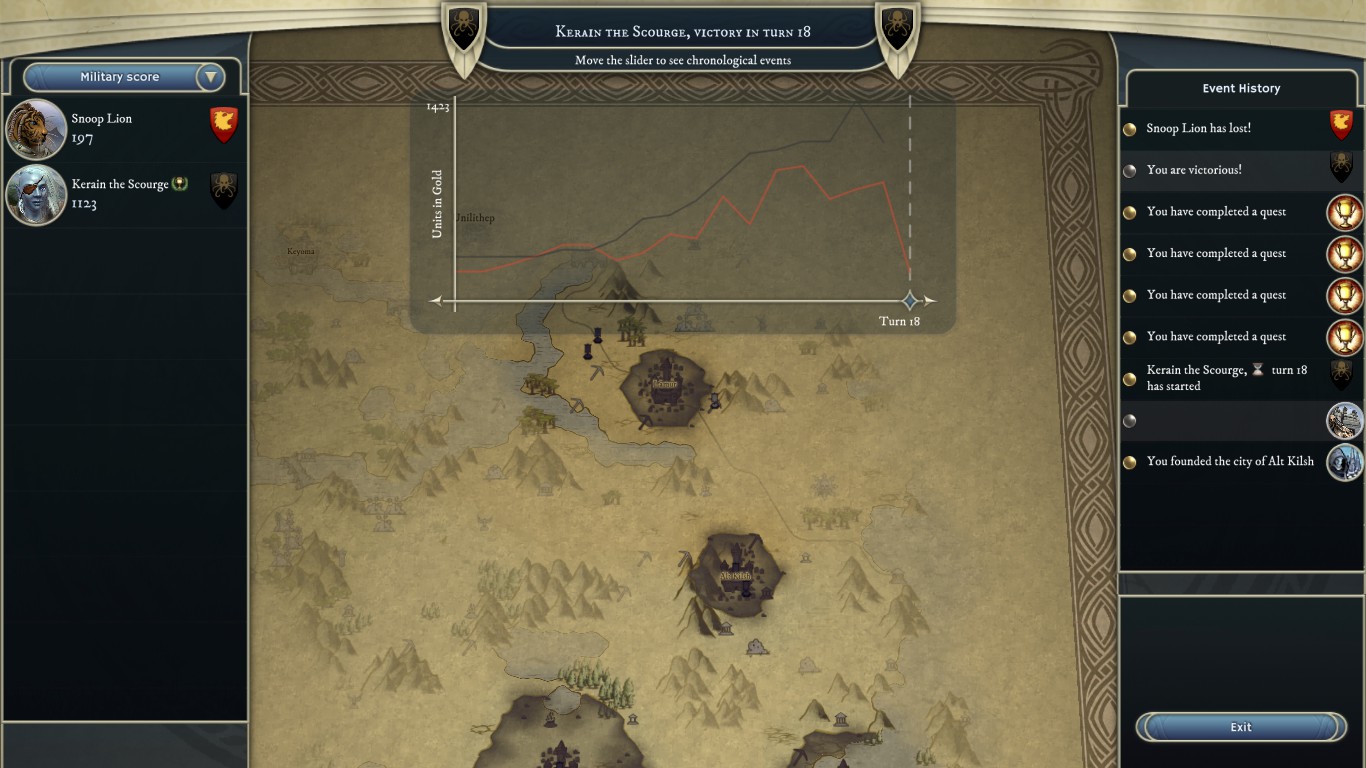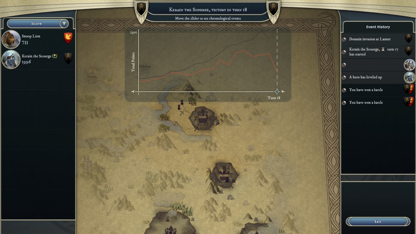 Sin started scouting me very early with a raider, so he knew my location from the get-go, I've been trying to play Tigrans a few times and it seems like I just can't successfully start without loosing cheetahs, I think it is hard to master strategies with the pounce ability. Anyway, I also lost my chariot in one of my battles because it got stunned while it was trying to flee to split the enemies, so overall a rough start and I knew had to be ready for Sin's usual turn 15-20 attack and I just wasn't.
