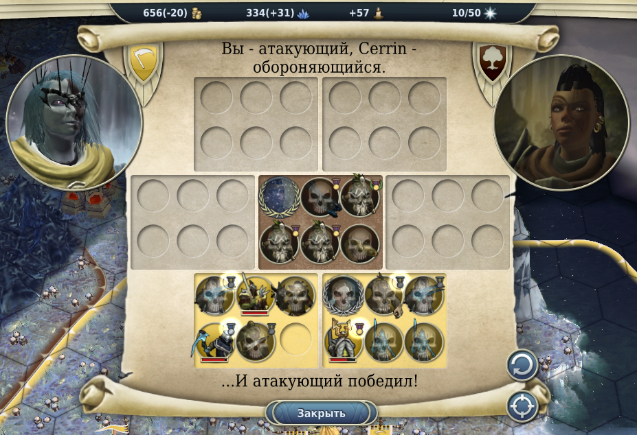 It was very tough battle, he had 40% frost protection from "warm at night" skill and also there was "Omen of the Dove" cosmic event which I think was worse for me, because my units were weak and were doing very little damage vs his high defense units.